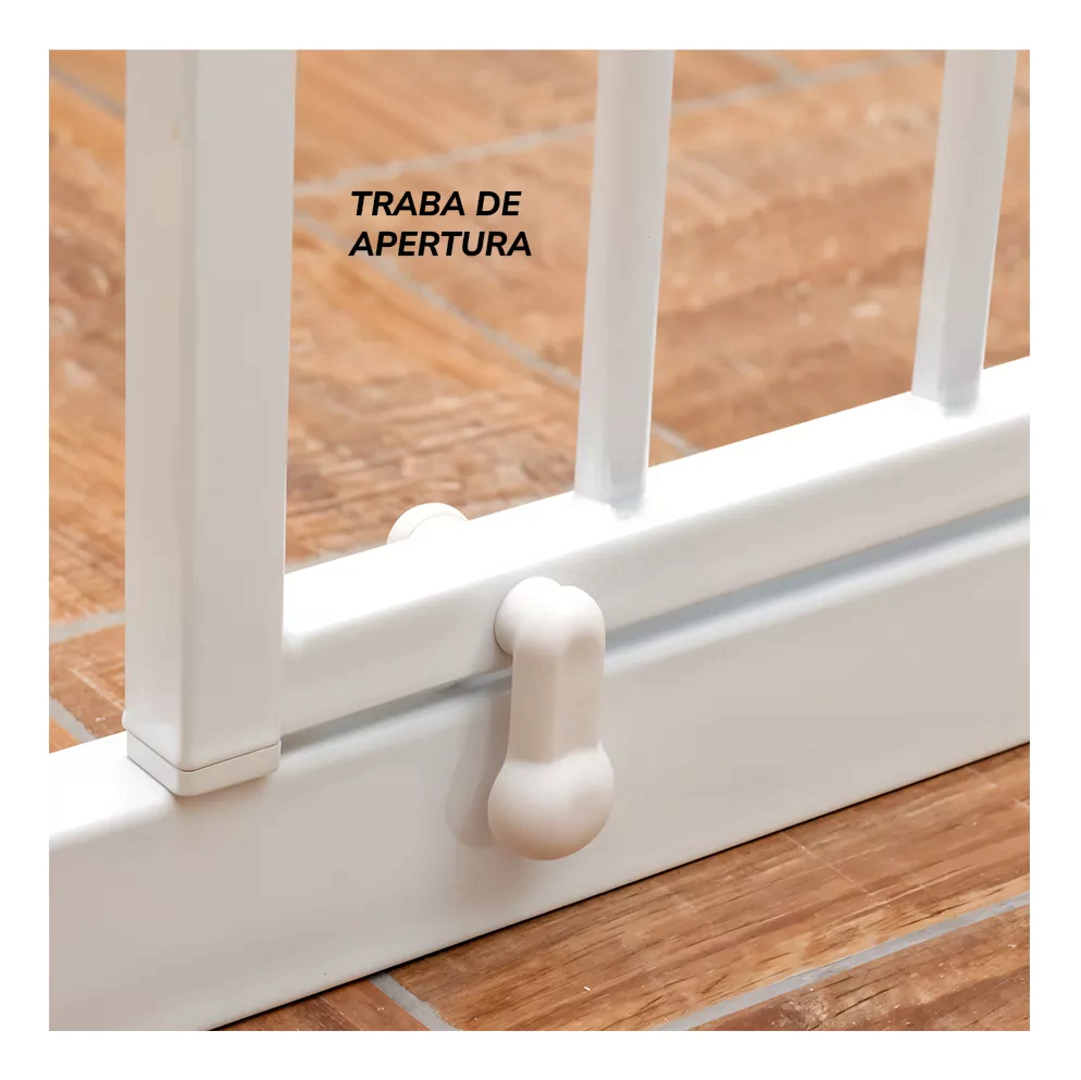 Ideal para evitar accidentes en escaleras o puertas, su diseño se integra armoniosamente en cualquier espacio de la casa. Esta barrera es fácil de instalar y ajustar, ofreciendo una solución rápida y eficaz para el cuidado de tu hijo.