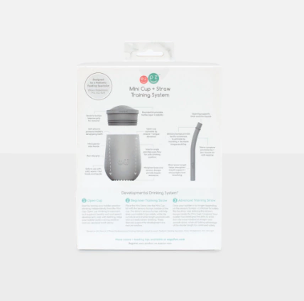 El sistema de entrenamiento del vaso Mini Cup + el sorbete es ideal para enseñarle a tu bebé cómo tomar de un vaso abierto y aprender a usar una pajita de manera segura.